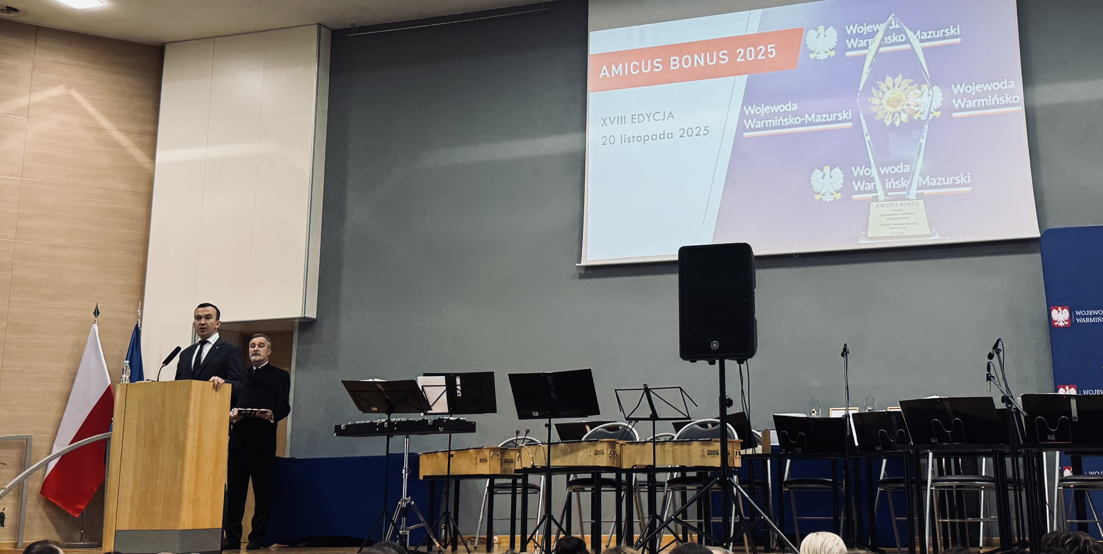 20 listopada 2025r. w Olsztynie odbyła się uroczysta gala wręczenia nagród Amicus Bonus- prestiżowego wyróżnienia przyznawanego od lat z okazji Dnia Pracownika Socjalnego, którego pomysłodowczynią była ówczesna Wojewoda Pani Anna Szyszka.W uroczystości wzięli udział Kierownik Środowiskowego Domu Samopomocy w Jegłowniku Pan Paweł Ziółkowski oraz Pedagog Pani Agata Wróblewska.