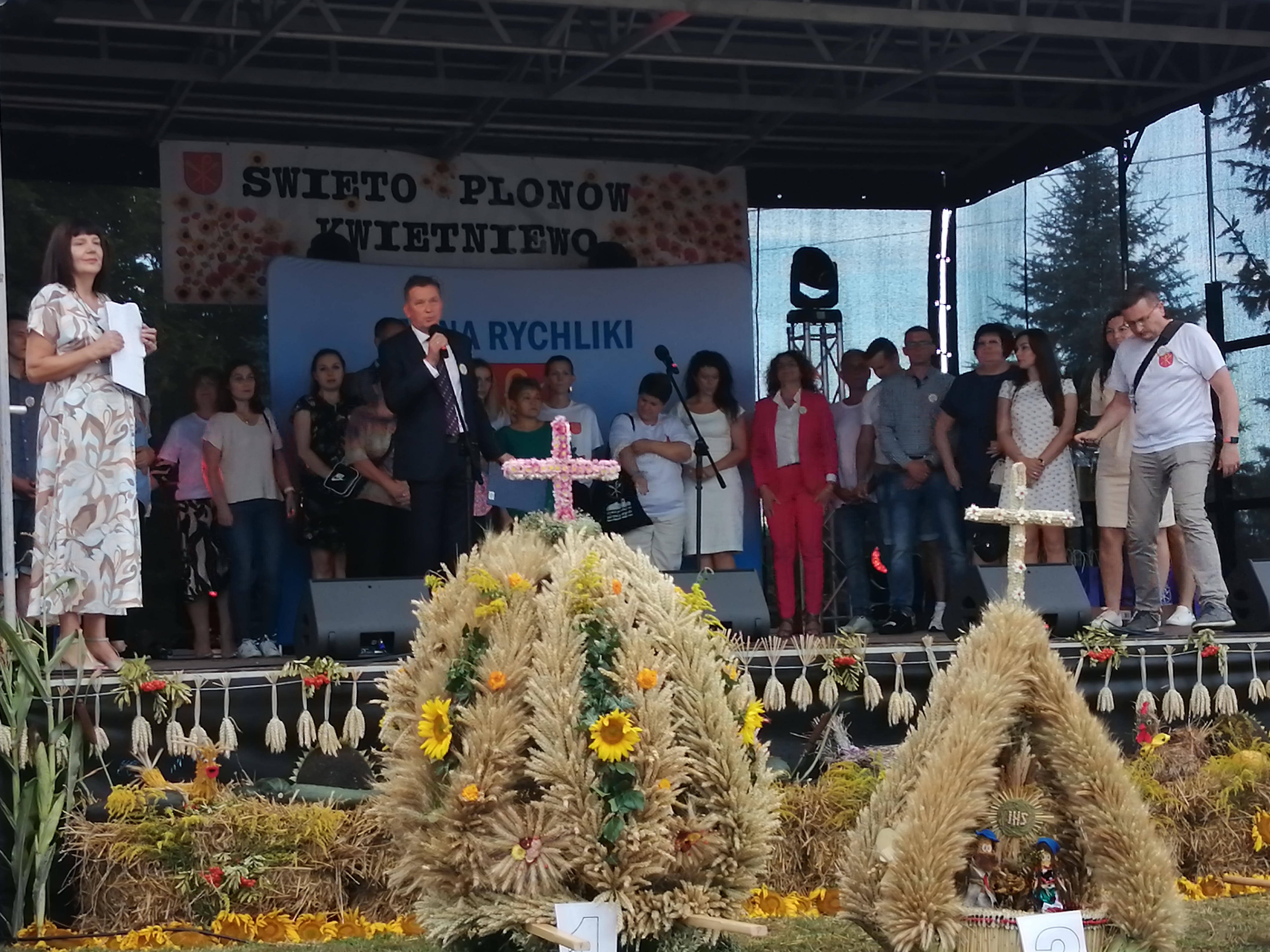Tegoroczne Święto Plonów w gminie Rychliki zostało zorganizowane w Kwietniewie. Uroczystość będącą podziękowaniem za całoroczny trud rolnika oraz ciężką i odpowiedzialną pracę ludzi związanych z rolnictwem, sadownictwem i przetwórstwem rozpoczęła Msza Święta z udziałem orkiestry strażackiej. Następnie uroczystości były obchodzone na boisku przy Środowiskowym Domu Samopomocy w Kwietniewie, gdzie Pan Wójt Zbigniew Lichuszewski powitał wszystkich i rozpoczął ceremoniał dożynkowy. Kolejnym punktem uroczystości były wystąpienia okolicznościowe oraz występy artystyczne. Wśród osób chcących wspólnie obchodzić Święto Plonów zebrali się przede wszystkim mieszkańcy Gminy Rychliki oraz zaproszeni goście: posłowie, senatorowie i osoby współpracujące z gminą Rychliki, a wśród nich Prezes Elbląskiego Stowarzyszenia Organizatorów Pomocy Społecznej w Elblągu – Pani Anna Szyszka.
