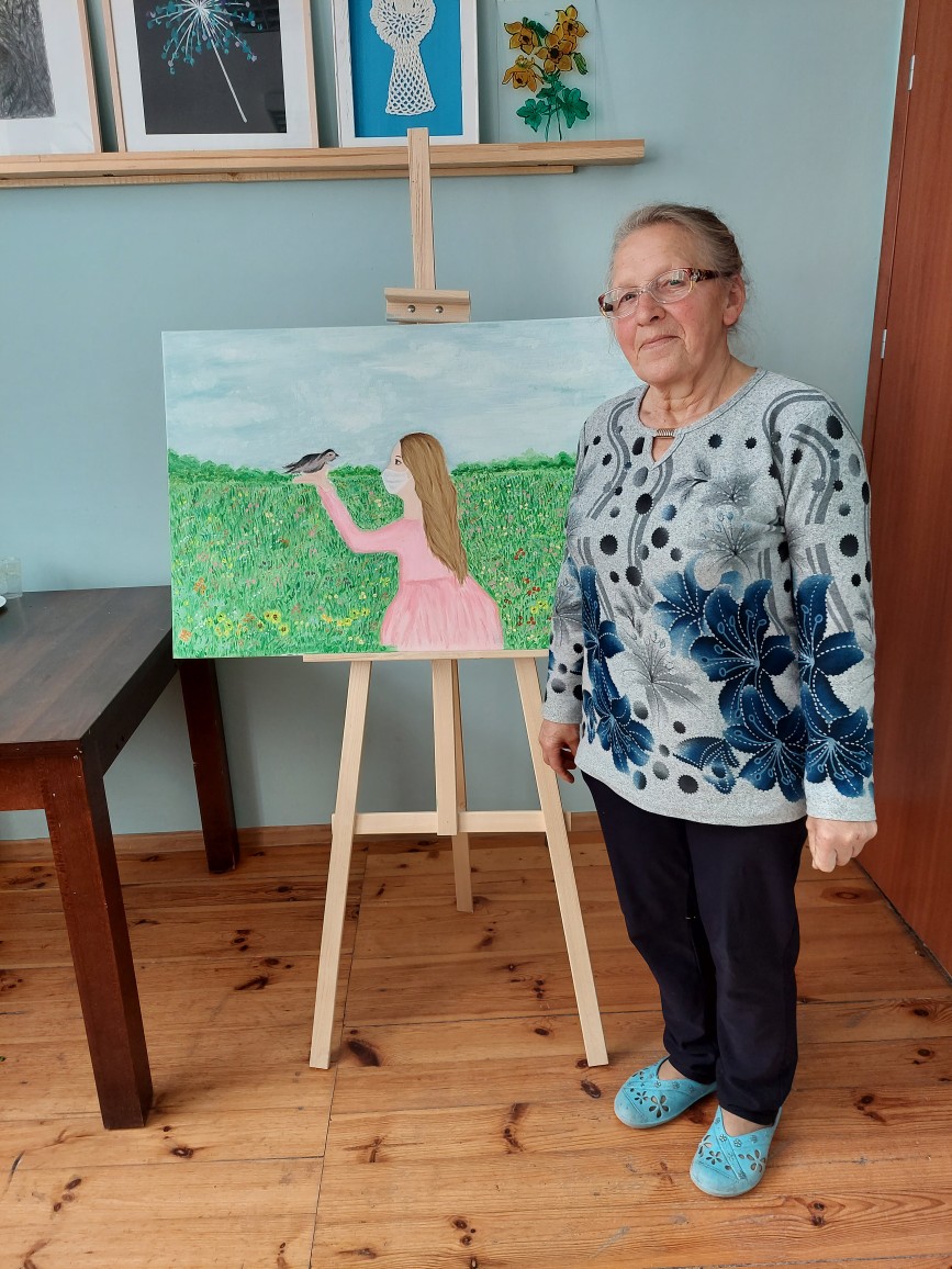 Temat Konkursu Plastycznego zorganizowanego przez Środowiskowy Dom Samopomocy w Elblągu przy ul. Zamkowej brzmiał „Zdrowie psychiczne w czasie pandemii”. Do Konkursu w Środowiskowym Domu Samopomocy w Kwietniewie zgłosiły się pani Elżbieta Ciereszko i pani Janina Dmytryszyn. Prace powstały w Środowikowym Domu Samopomocy w Kwietniewie w sali plastycznej w ramach treningu aktywności twórczej techniką malarstwo farbą akrylową na podobraziu. Pani Janina Dmytryszyn za swoją pracę otzymała I miejsce, zaś praca pani Elżbiety Ciereszko została wyróżniona. Obie panie otrzymały atrakcyjne nagrody oraz pamiątkowe dyplomy.