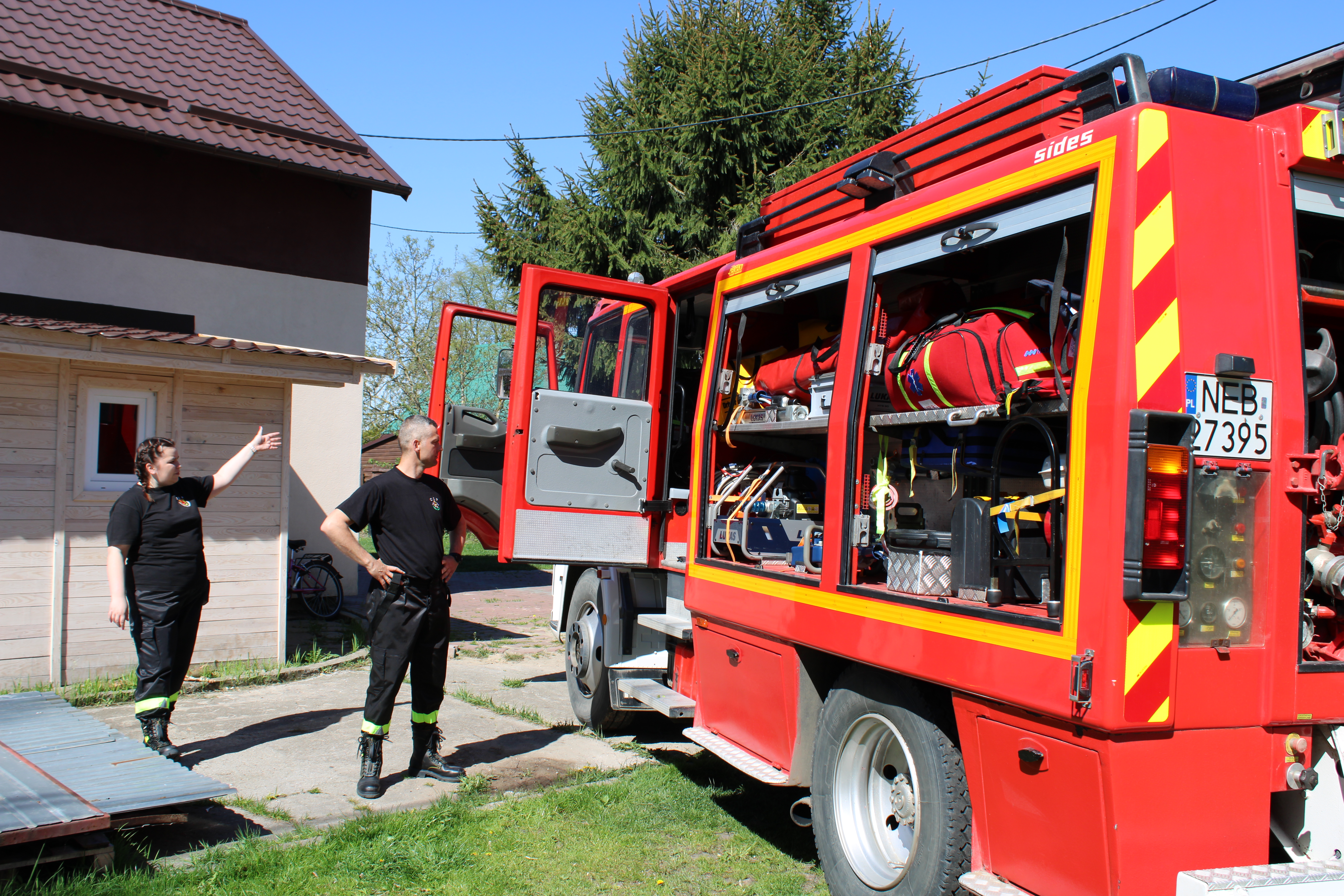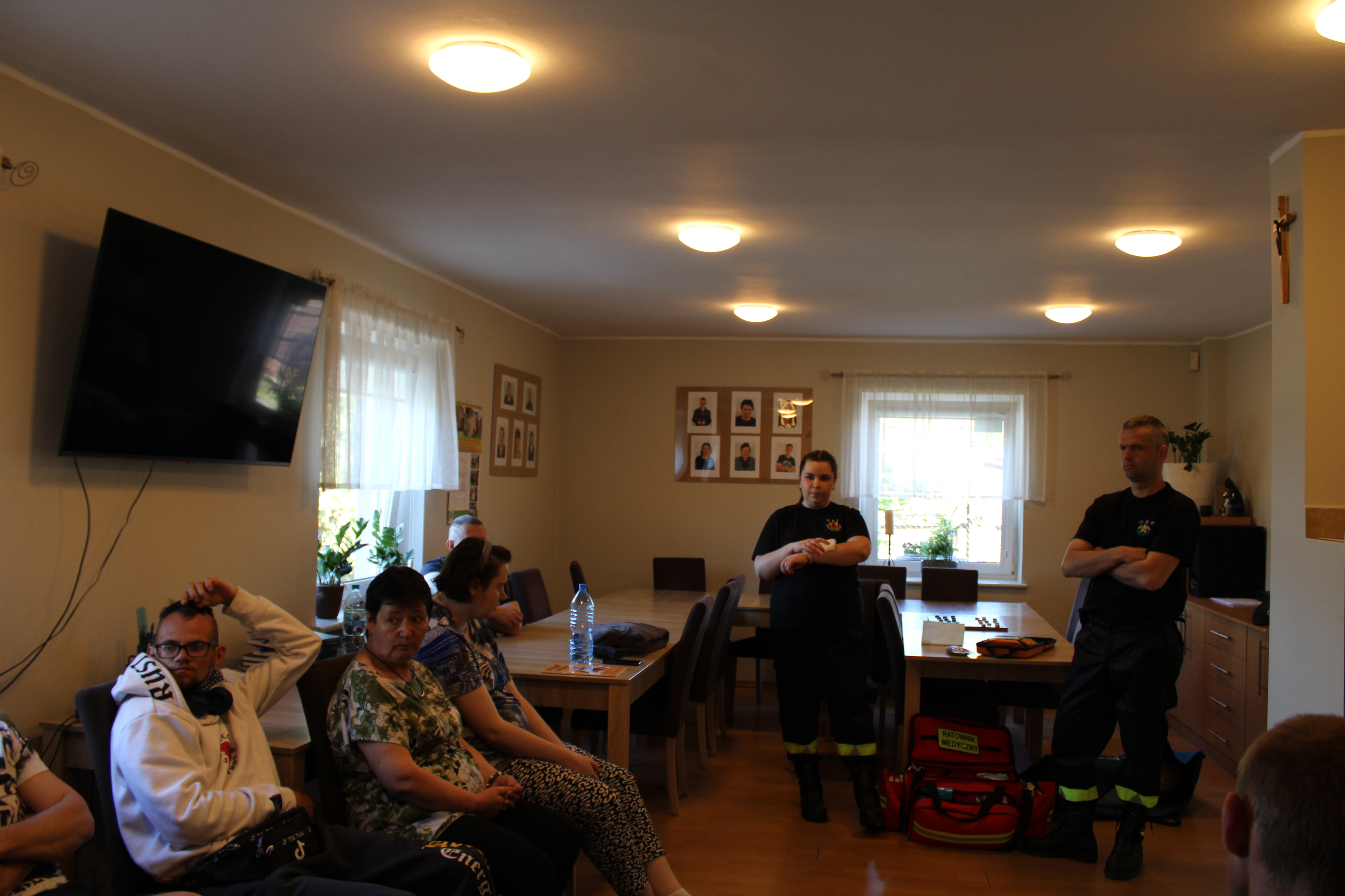 Dnia 13.05.2021 roku w Środowiskowym Domu Samopomocy w Jegłowniku odbyło się szkolenie z zakresu pierwszej pomocy przedmedycznej dla uczestników, poprowadzone przez druha Annę i druha Kamila z Ochotniczej Straży Pożarnej w Gronowie Elbląskim. Celem szkolenia było nabycie wiedzy teoretycznej oraz umiejętności praktycznych w zakresie pierwszej pomocy oraz przygotowanie uczestników do samodzielnego udzielania pomocy w najbardziej typowych sytuacjach z życia codziennego. Uczestnicy mieli możliwość zobaczyć wóz strażacki wraz z całym wyposażeniem do przeprowadzenia akcji ratunkowej.