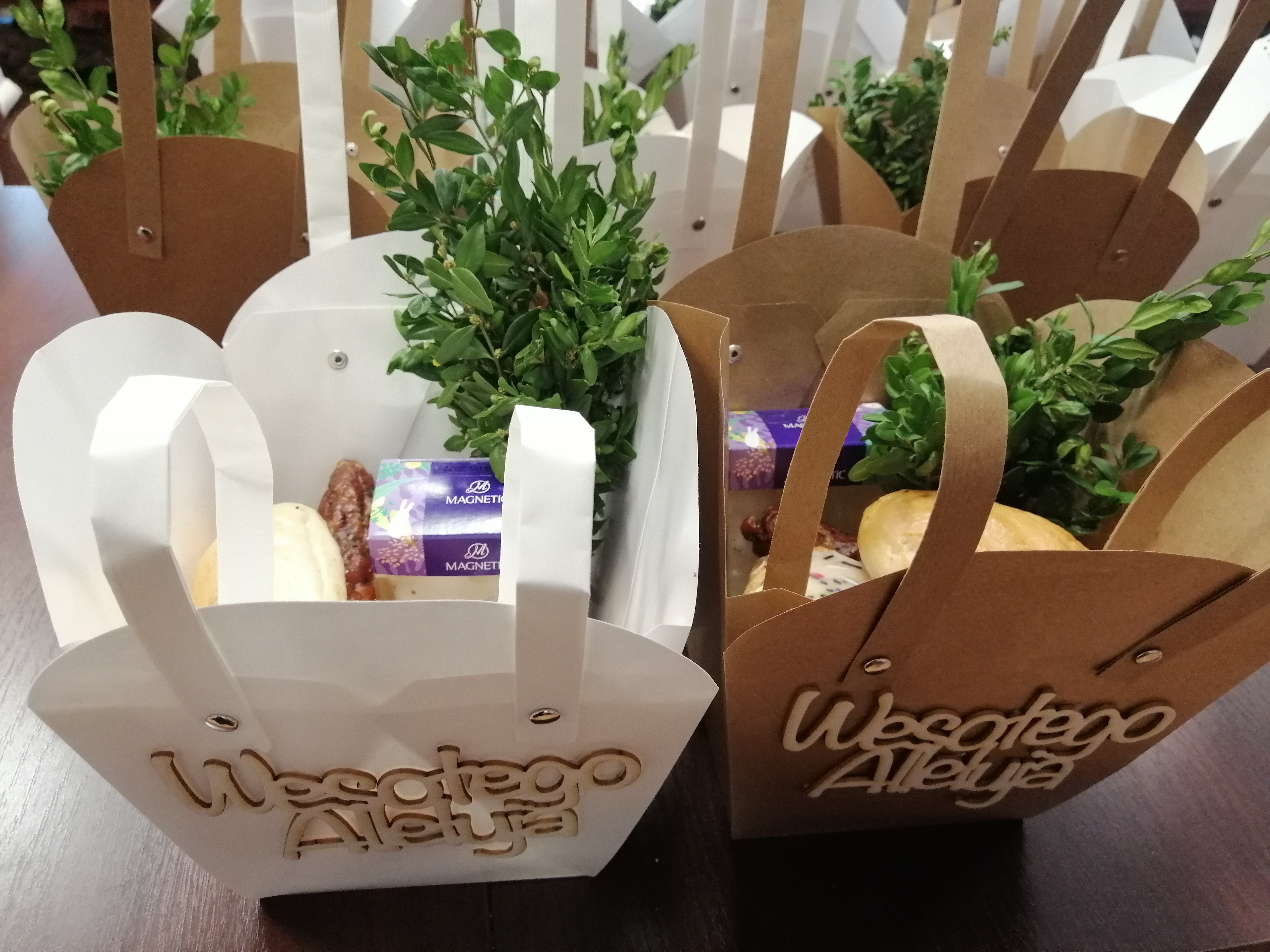 Świąta Wielkiej Nocy i celebrowane w tym czasie Misterium Paschalne Jezusa Chrystusa to czas wielkiej radości ze Zmartwychwstania Pana. Umocnieni wiarą i oczekiwaniem na Niedzielę Zmartwychwstania Pańskiego, pragniemy wspólnie celebrować to niezwykłe wydarzenia. W tym roku nasze obchody tych ważnych w Kościele Katolickim wydarzeń przybrać musiały inna formę. Święta to czas, który jednoczy i zbliża ludzi i dlatego, nie mogąc być razem, postanowiliśmy sprawić naszym uczestnikom przyjemność i dać świadectwo tego, że niezmiennie są w naszych myślach. Z tej okazji przygotowaliśmy naszym uczestnikom wielknocne potrawy, koszyczek z tradycyjną święconką, świąteczne upominki oraz tematyczne kartki z życzeniami. Podczas składania życzeń nie zabrakło wzruszeń i słów otuchy.