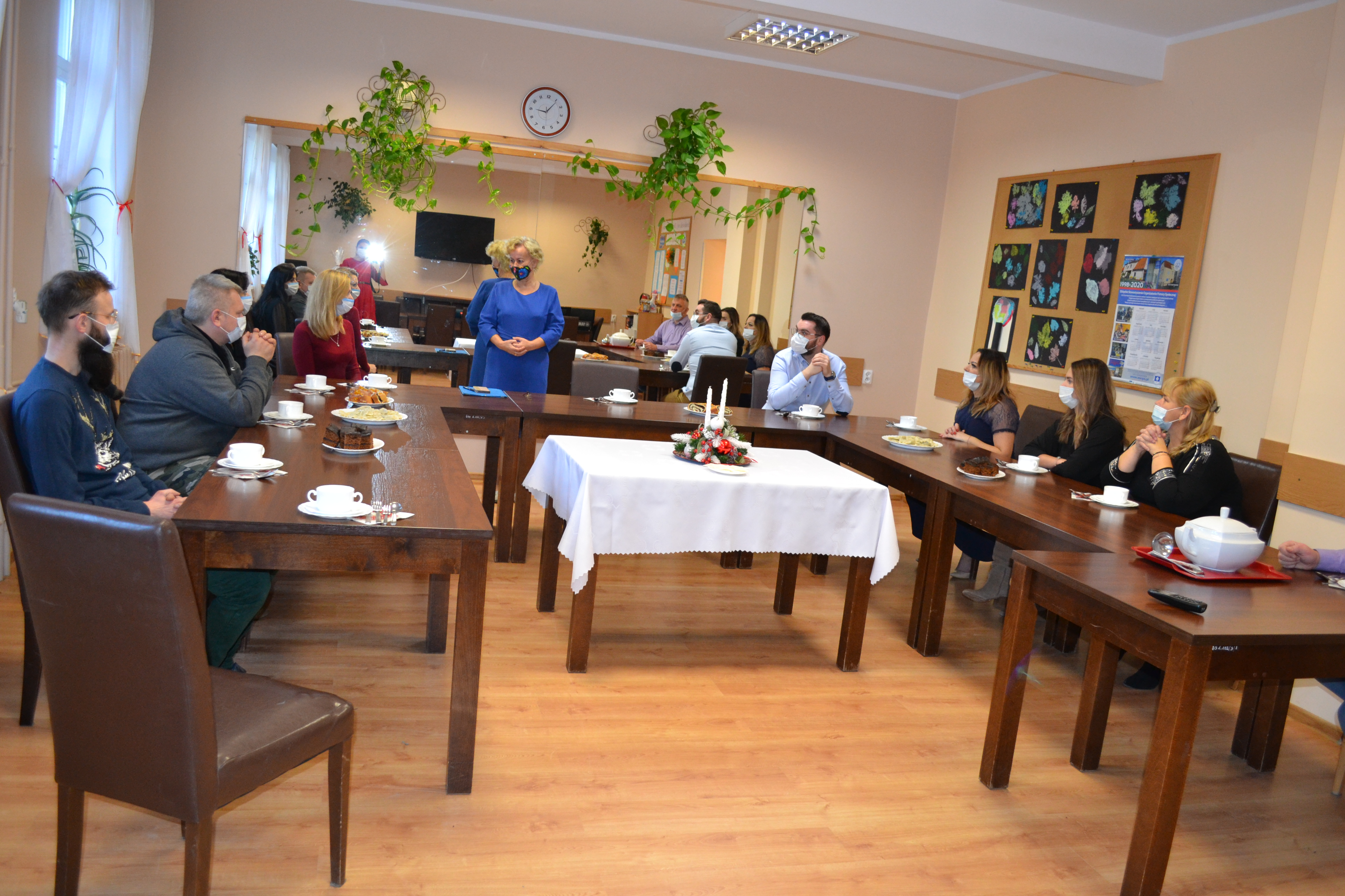 W związku ze zbliżającymi się Świętami Bożego Narodzenia, w Środowiskowym Domu Samopomocy w Kwietniewie odbyło się spotkanie wigilijne Pani Kierownik, Jadwigi Kubackiej z pracownikami. Spotkanie przebiegło w bardzo miłej atmosferze – zostały złożone świąteczne życzenia, a także spożyliśmy wspólnie wigilijny posiłek. Pomimo trudnej sytuacji udało nam się zachować świąteczną tradycję.