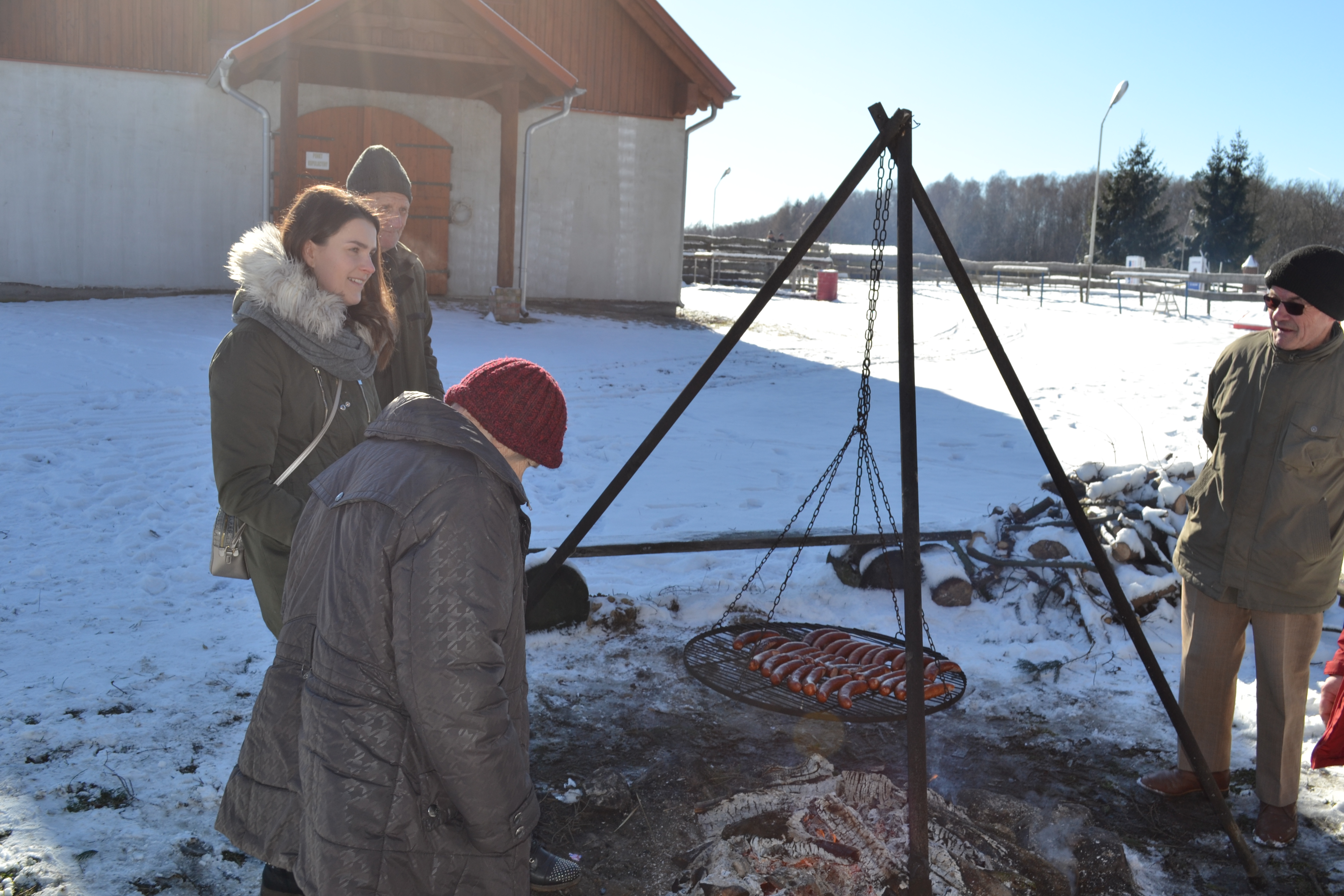 Przebywanie na świeżym wpływa na dobry apetyt, więc gospodarze zadbali o nas, czętując przepysznym regionalnym jedzeniem. Nie zabrakło rozgrzewającej herbaty oraz kiełbasek z ogniska.