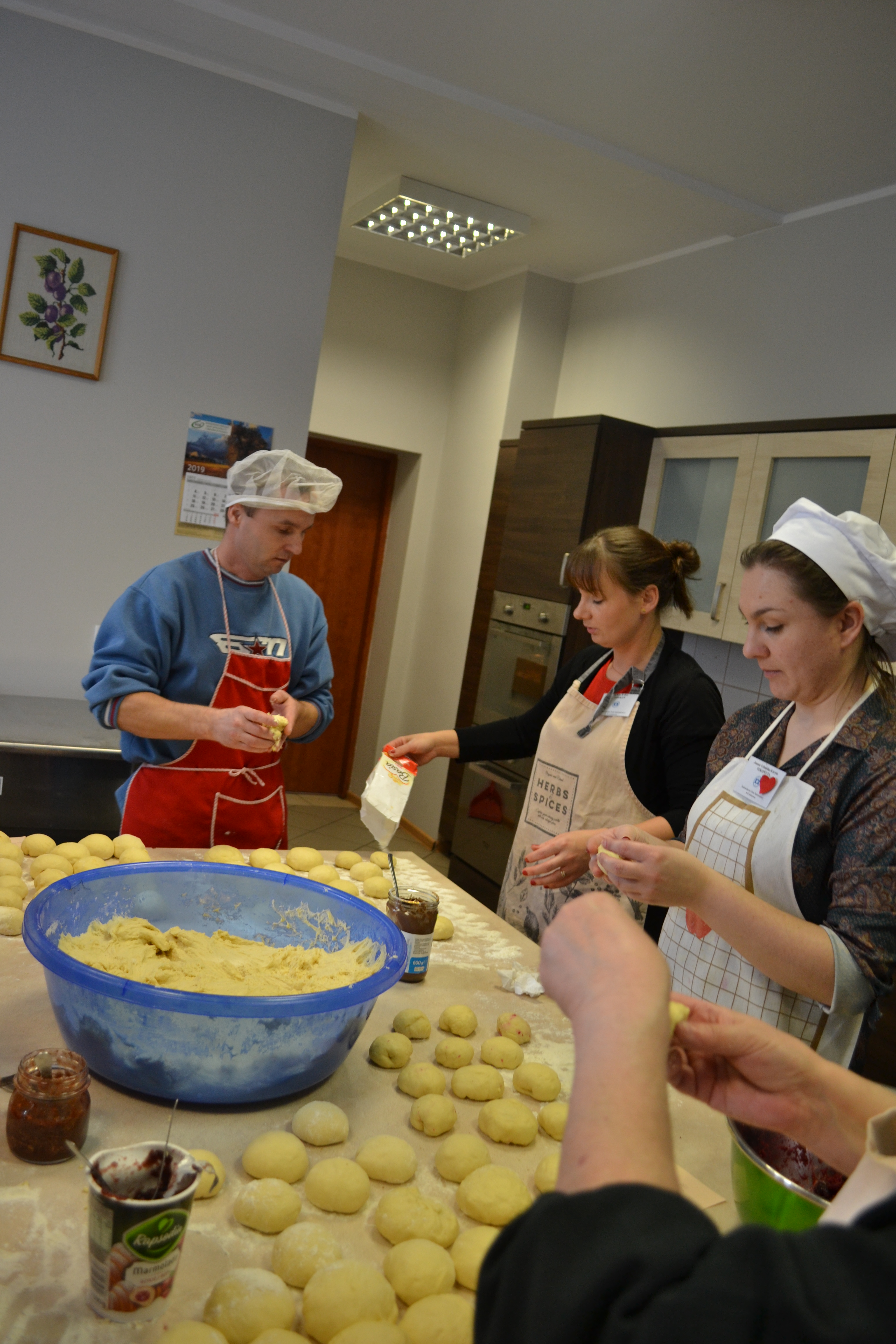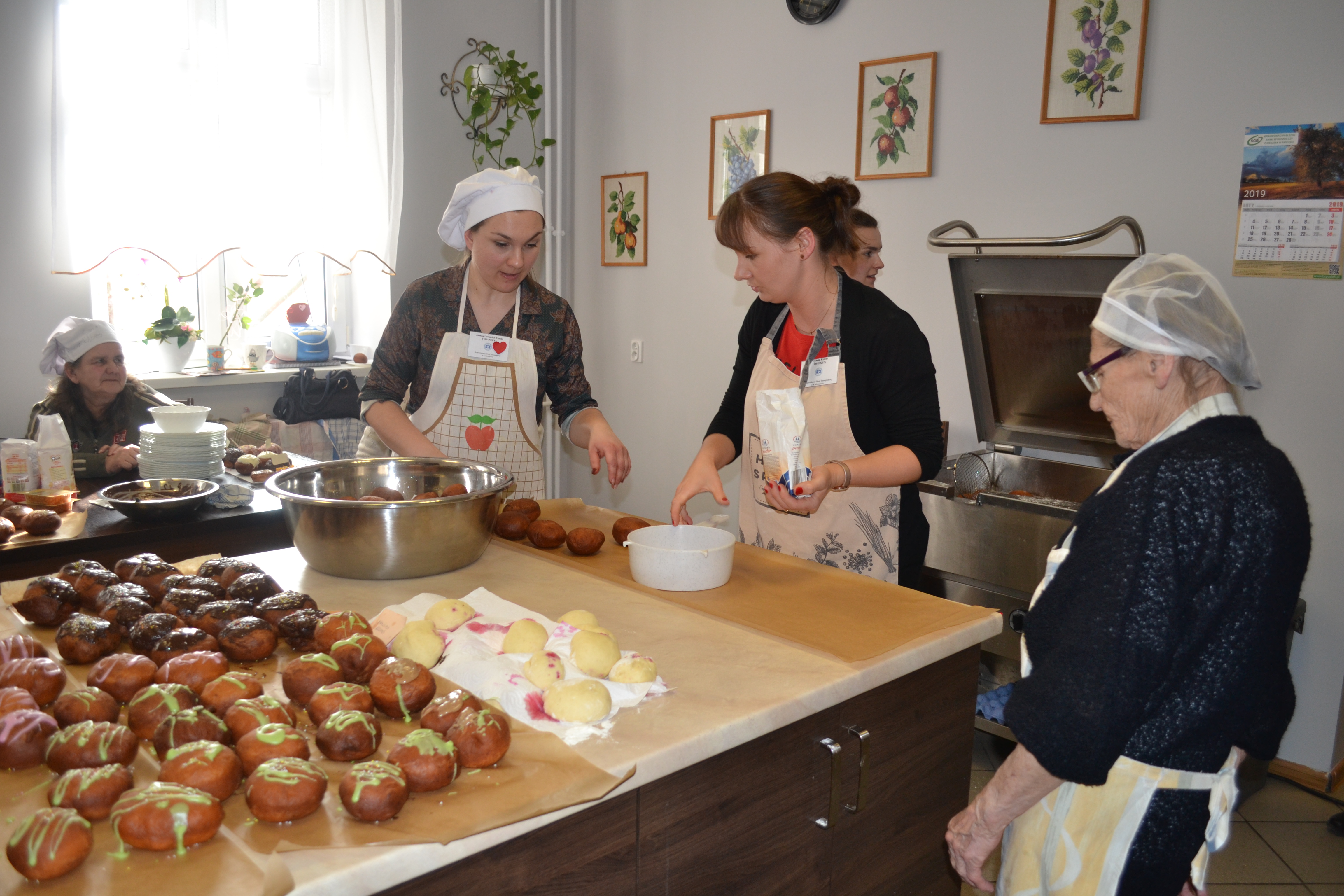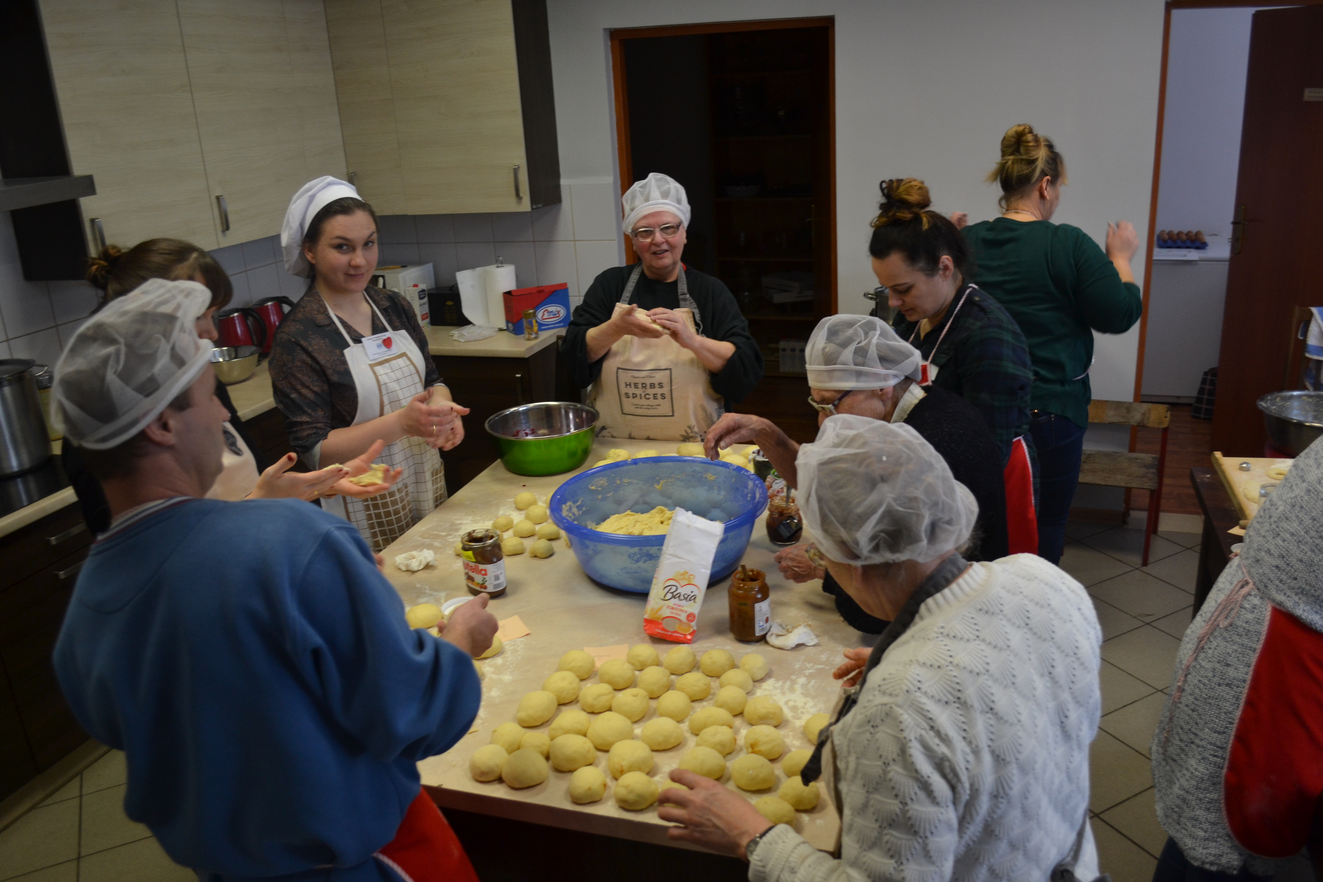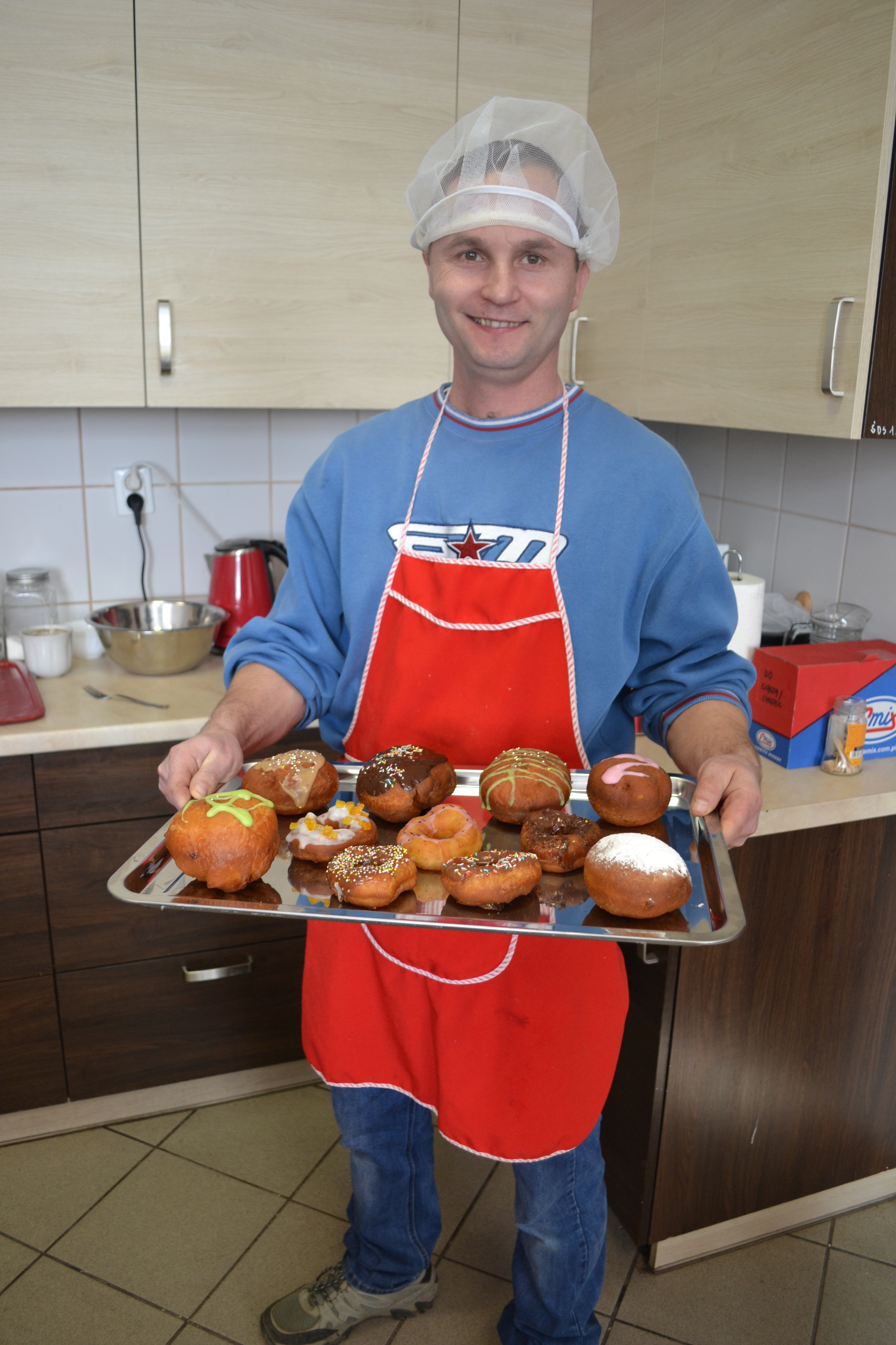 Zgodnie z tradycją uczestnicy przy asyście kadry Domu od wczesnych godzin porannych zajmowali się przygotowaniem pączków i oponek. Stworzone zostały trzy drużyny, które wzięły udział w Konkursie na Najsmaczniejszego Pączka. Podczas rywalizacji wszyscy doskonale się bawili, a zapach, który rozchodził się po całym Ośrodku, zapowiadał pyszny podwieczorek. Przy końcowej ocenie brano pod uwagę wygląd smakołyków, dobór nadzienia, dekorację oraz oczywiści smak.