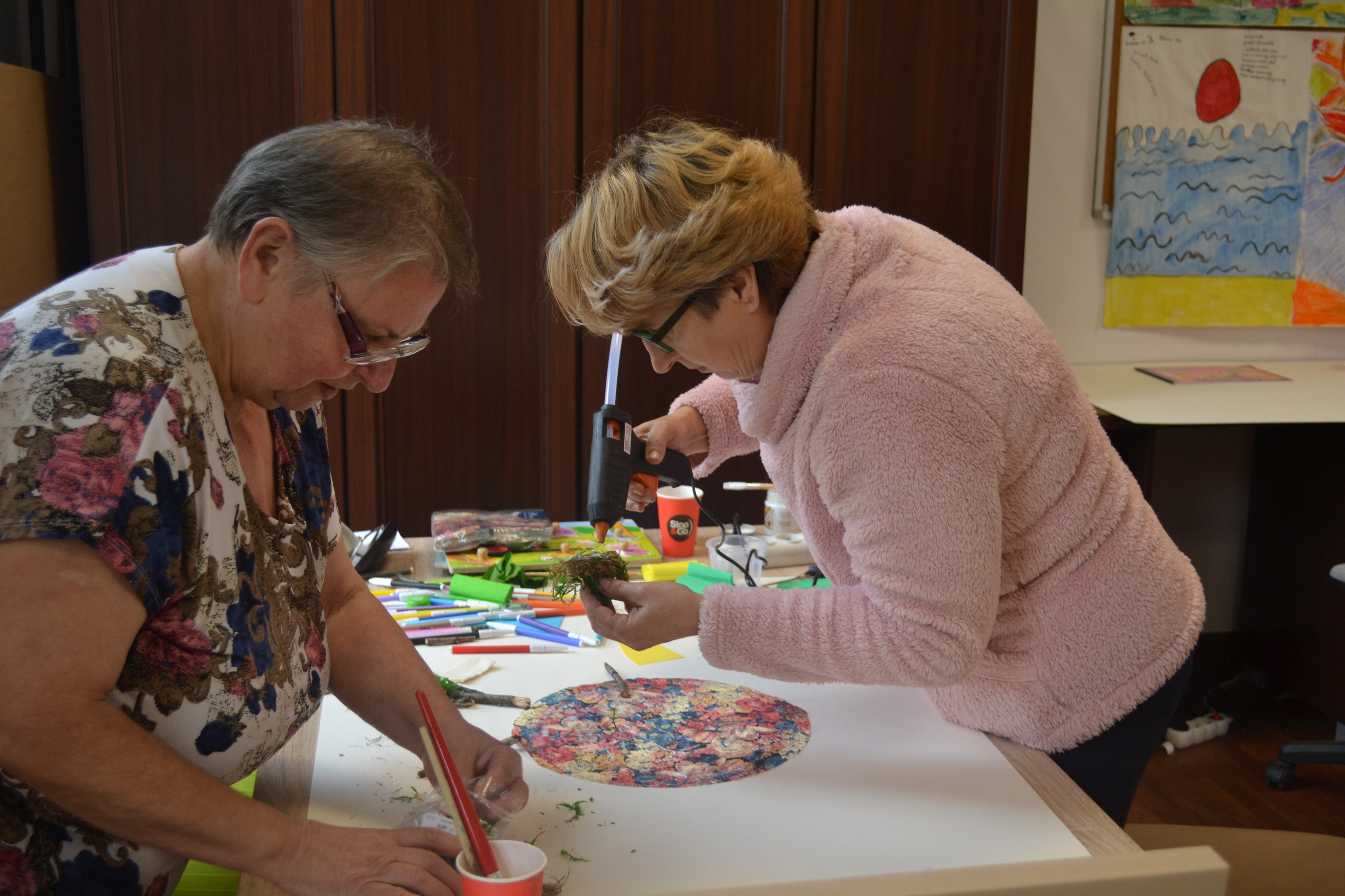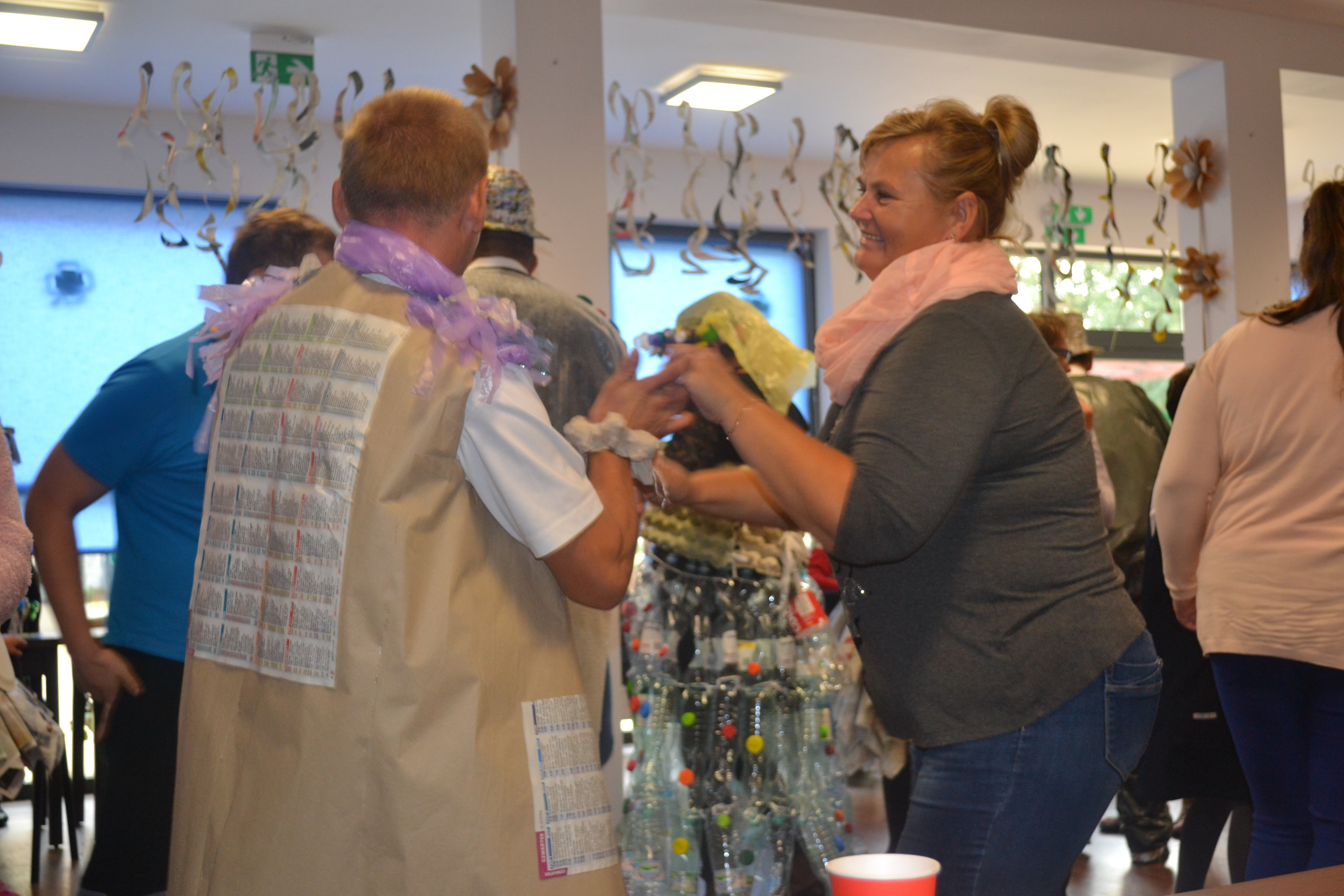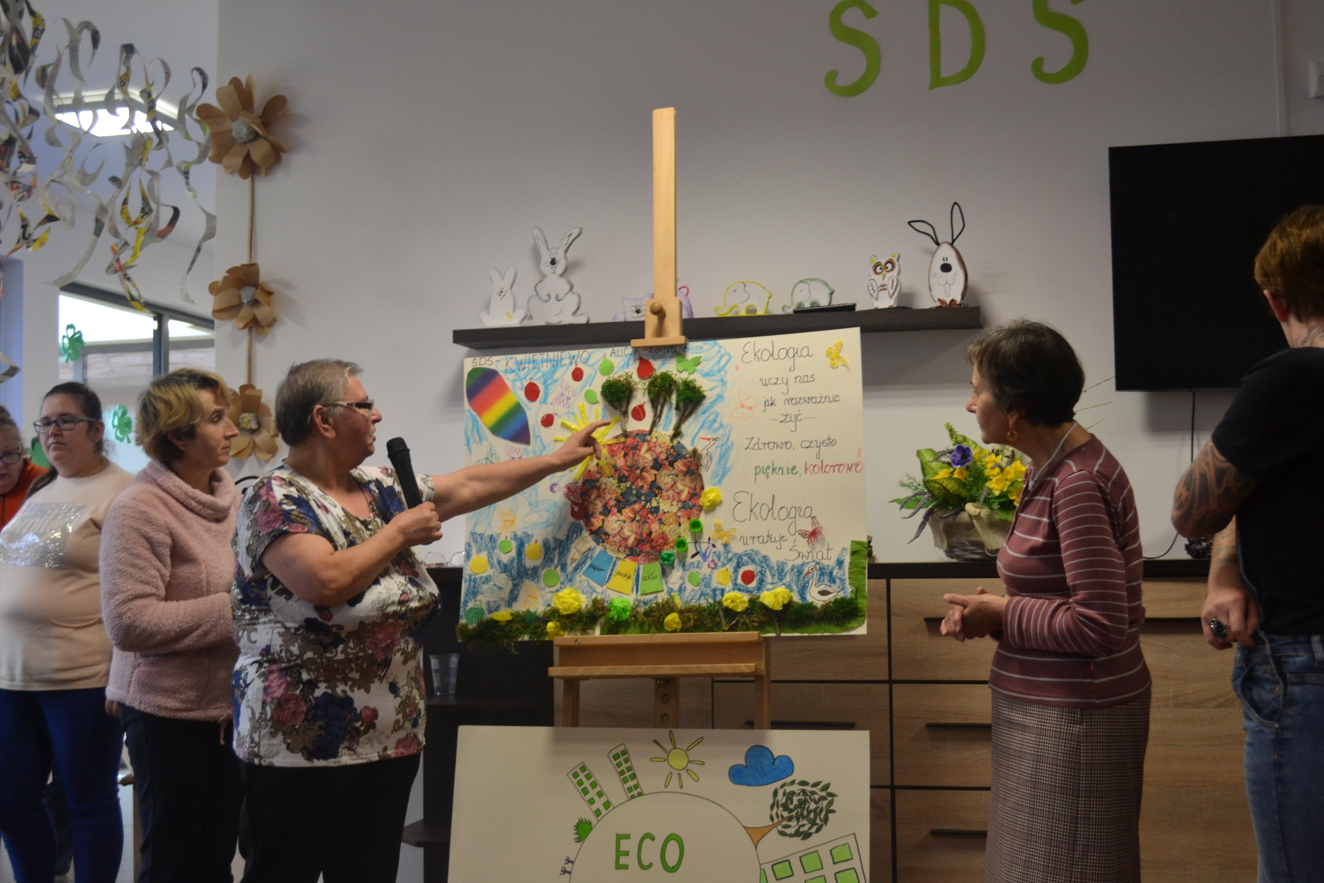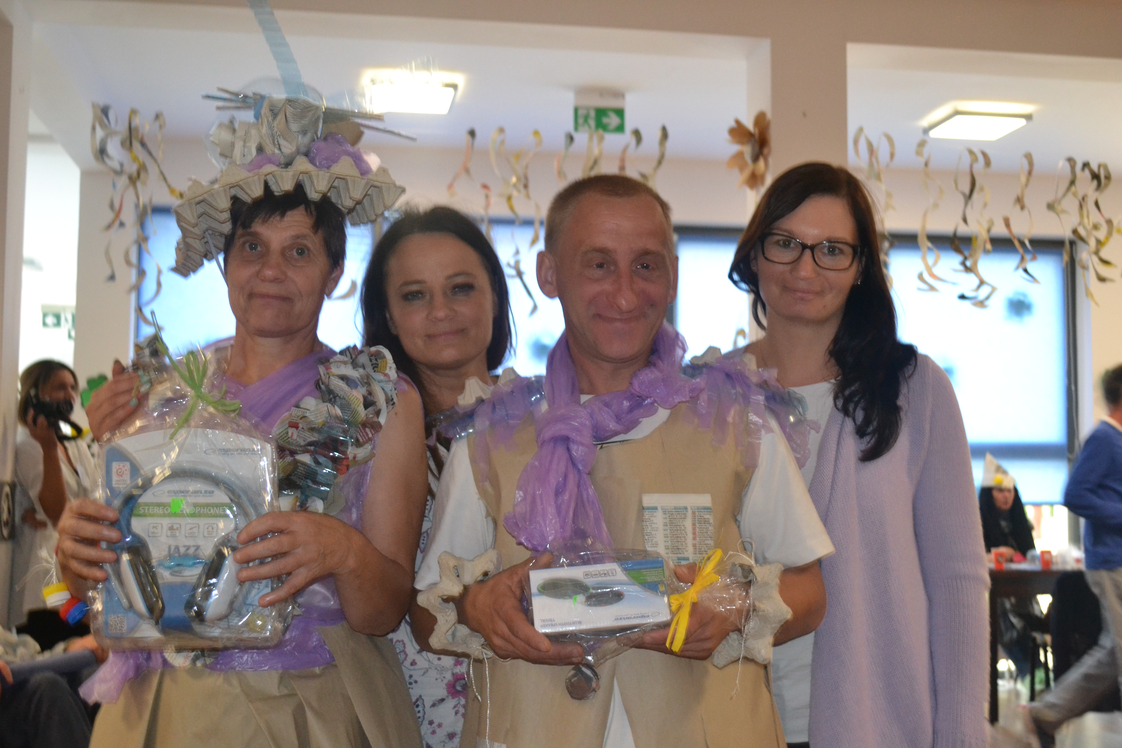 Uczestnicy mieli możliwość spróbowania swoich sił w konkursach- pokaz mody recyklingowej oraz w konkursie plastycznym. Za prezentację stroju z surowców wtórnych pierwsze miejsce zajął pan Robert Grzemiński, drugie miejsce powędrowało do naszej uczestniczki pani Jolanty Łukaszonek. W konkursie plastycznym wygrały: pani Danuta Ukleja oraz pani Alicja Kryłow za wykonanie pracy plastycznej pt. "Eko Planeta". Później przyszedł czas na wspólny posiłek.
