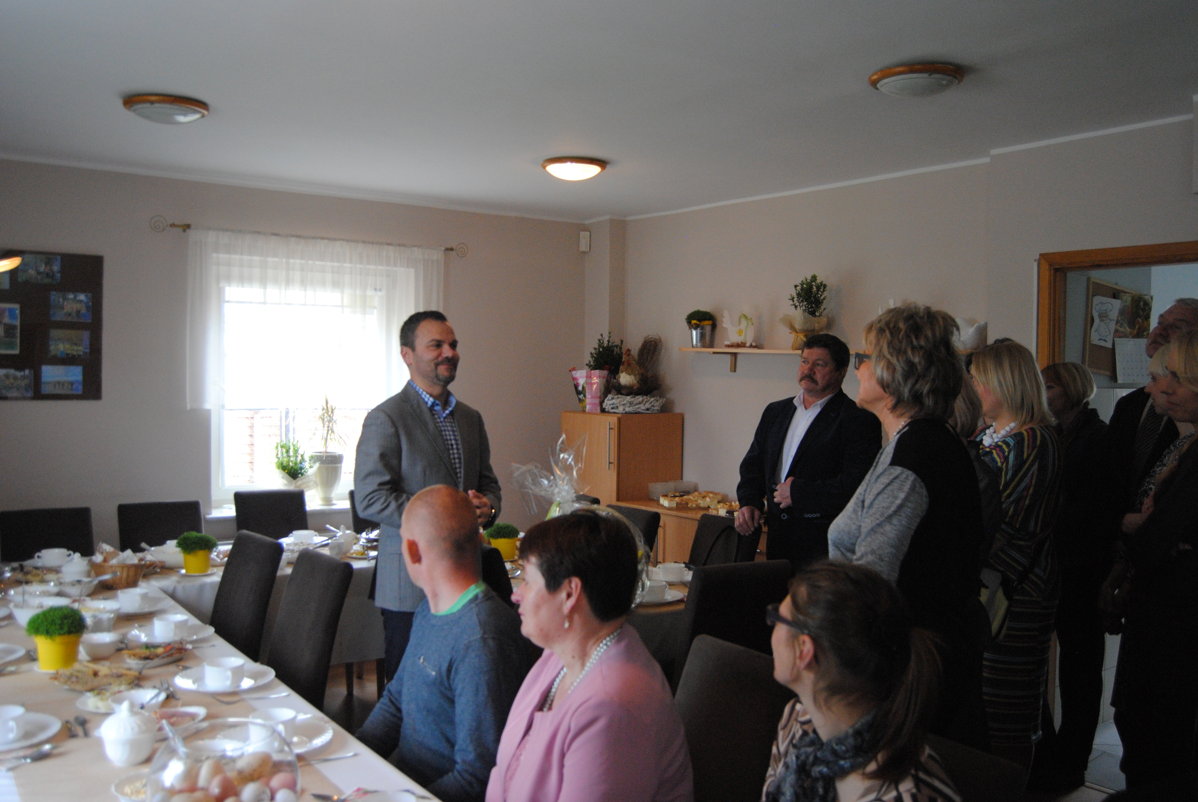 Wszystkich przybyłych gości uroczyście powitała Pani Kierownik – Marzena Janta-Lipińska. Spotkaniu towarzyszyły serdeczne, pełne wiosennego optymizmu życzenia, które złożył w imieniu Zarządu Elbląskiego Stowarzyszenia Organizatorów Pomocy Społecznej - Pan Zbigniew Pawłowski, życzenia złożyli również ks. Mariusz Ostaszewski, Wójt Gminy Gronowo Elbląskie Pan Marcin Ślęzak, Wójt Gminy Markusy – Pani Gabriela Żurawska oraz Sołtys Jegłownika – Pan Krzysztof Dorosz.